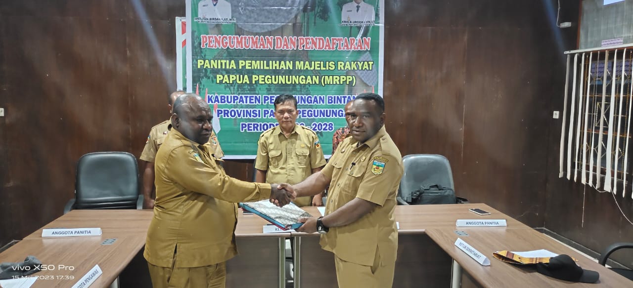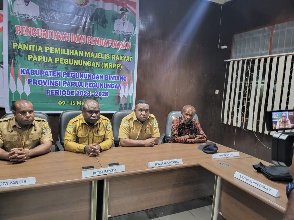 JAYAPURA (PB.COM)—Panitia Pemilihan (Panpil) Anggota Majelis Rakyat Papua (MRP) Provinsi Papua Pegunungan tingkat Kabupaten Pegunungan Bintang periode 2023-2028 resmi menutup pendaftaran bagi bakal calon pada Senin, 15 Mei 2023. Terdapat 6 bakal calon yang mendaftar dan dinyatakan memenuhi syarat administrasi.